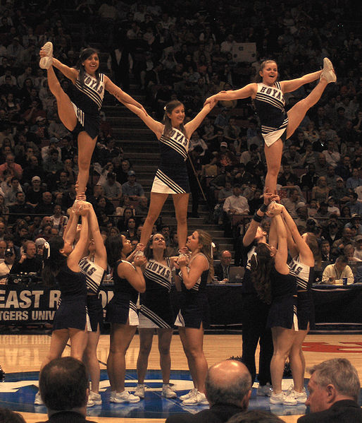 Cheerleading used to be very basic years ago when compared to today’s standards, but it has now evolved into an intense competition. This was also sensationalized by the 2000 movie, “Bring It On”, where 2 rival cheering squads competed against each other, even stealing each other’s routines. Over the past 10-15 years, it has gained national attention thru cheerleading competitions, increasing it’s exposure on networks such as ESPN, ESPN 2, and NBC. College-level cheerleading, and the National Competitions are amazingly competitive, well timed and coordinated. The squads have to be in great physical shape or someone can get horribly hurt – considering how high the stunts are off the ground.