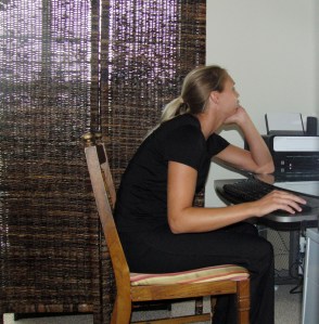 Sitting postures are similar, although some reclining chairs and seats with angled backs contribute to slouching. This is why it’s best to use a chair that is ergonimically efficient as well as comfortable. Generally, your posture should be similar while sitting at a table or while on a computer as it is while standing – upright but relaxed. Due to the increasing use of computers as well as the decrease of physical activity in this society, I will be a very busy chiropractor from all the chronic sprains and strains I’ll end up treating for this otherwise easily-correctible lifestyle change.