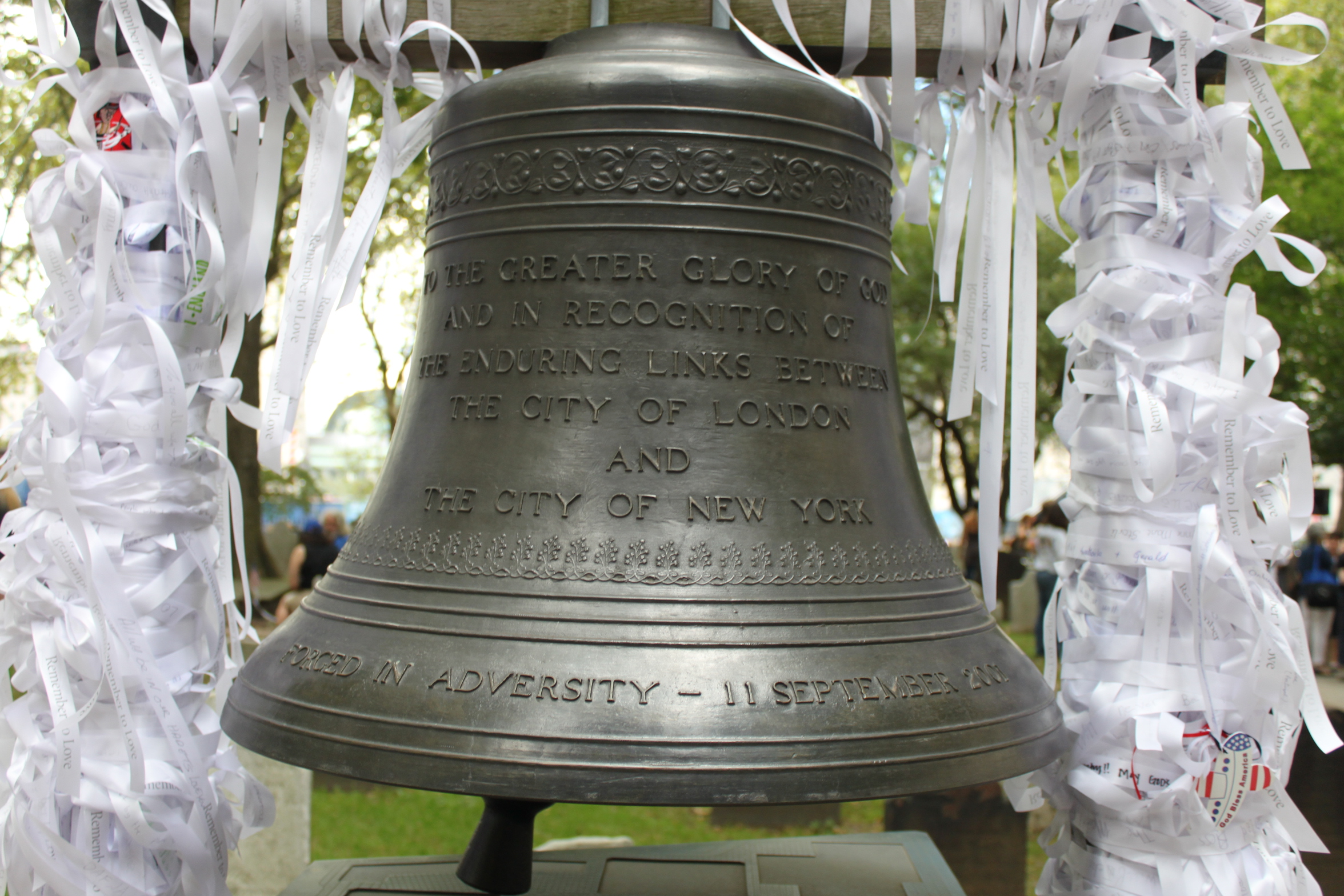 After the volunteers, police and firemen saw each other at the Chapel that year, our group went to an Irish bar a few blocks away. There were two British police officers in full dress and we became instant friends that night. As the beers came, their appreciation was returned by offering up pieces of their garb: pins, collar brass, whistles, badges, “bobby” hats and batons. You name it and they freely gave it up. They left the bar drunk and virtually naked – but with an awesome memory of spending time with people who were REALLY here, as well as pins, pictures and reciprocated police and firefighter paraphernalia from our own New York compliment. Later, we came to find out that those London police officers were there to deliver the “Bell of Hope” to St. Paul’s Chapel. We didn’t expect to meet them, but St. Paul’s has a natural tendency for extraordinary things.